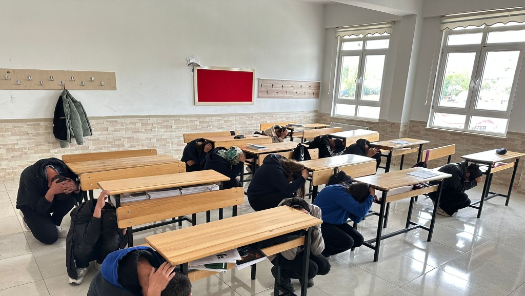 Tatbikat sayesinde öğrenciler, olası bir afet durumunda nasıl hareket etmeleri gerektiğini pekiştirirken, afet farkındalığının önemine de dikkat çekildi.